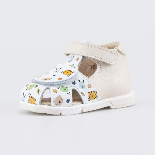 Гибкая и легкая подошва из резины обеспечивает амортизацию и необходимую поддержку. Образует наплыв на носочную часть, защищая ее от повреждений, и не оставляет следов на полу, поэтому сандалии можно носить в детских учреждениях.