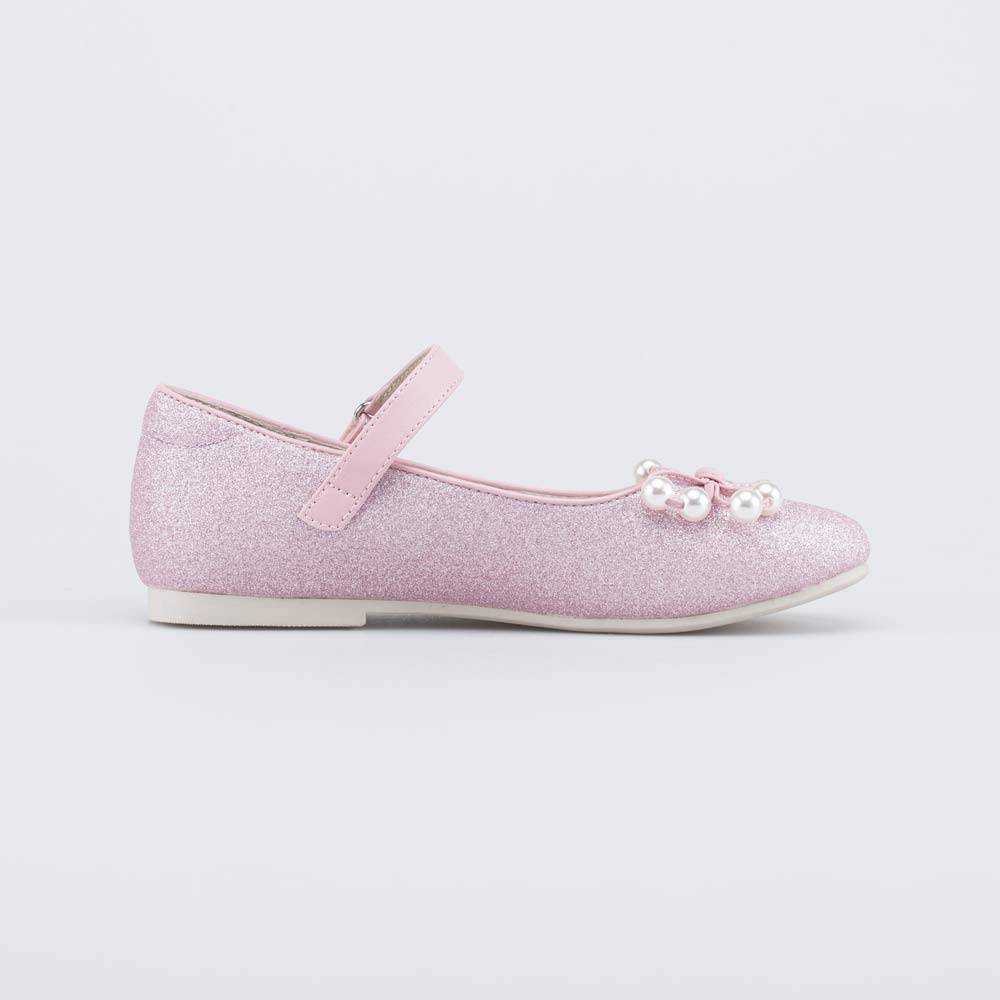 Праздничные туфли-балетки розового цвета подходят для девочки-школьницы.