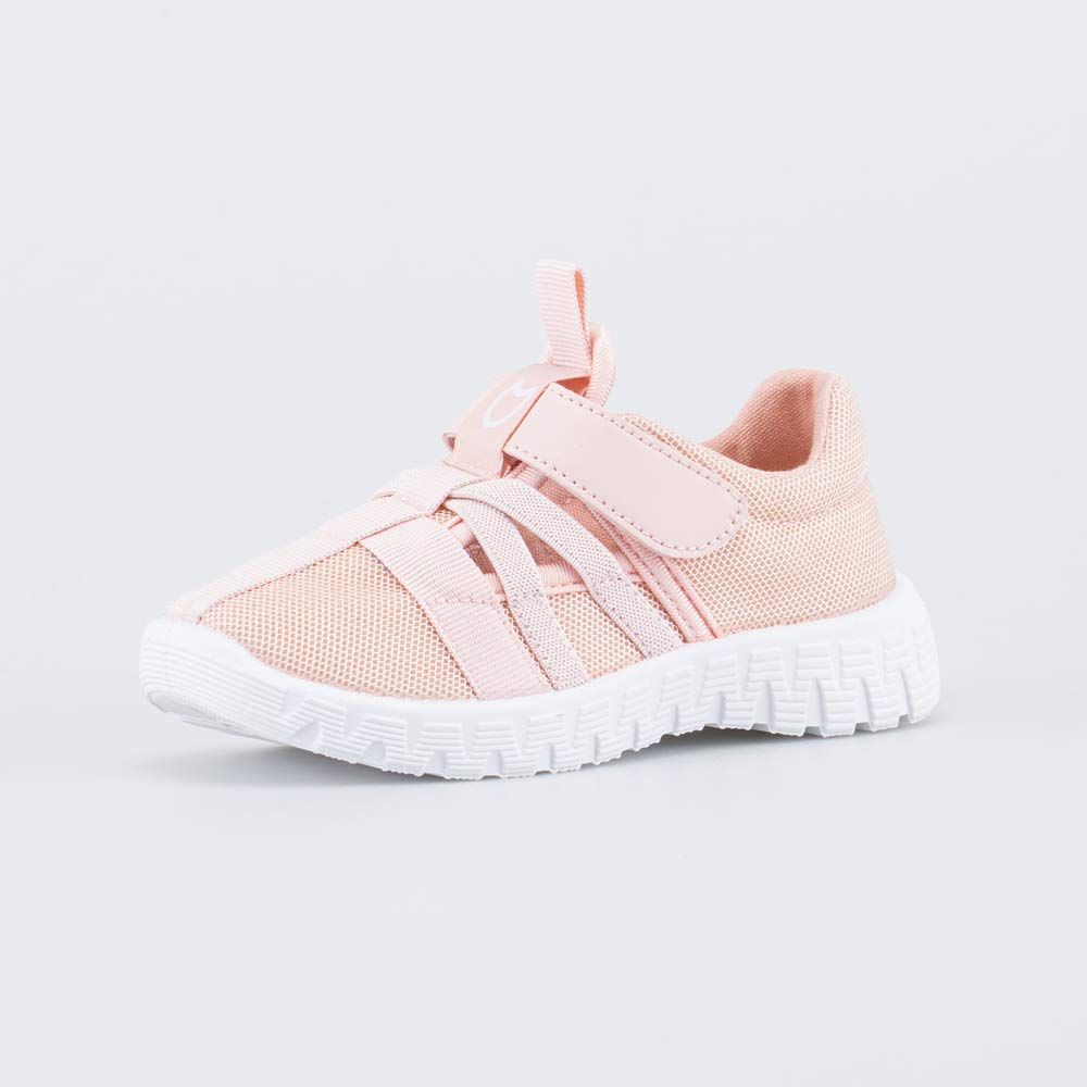 Розовые текстильные кроссовки для девочки подходят для жарких дней и повседневного использования в детском саду.