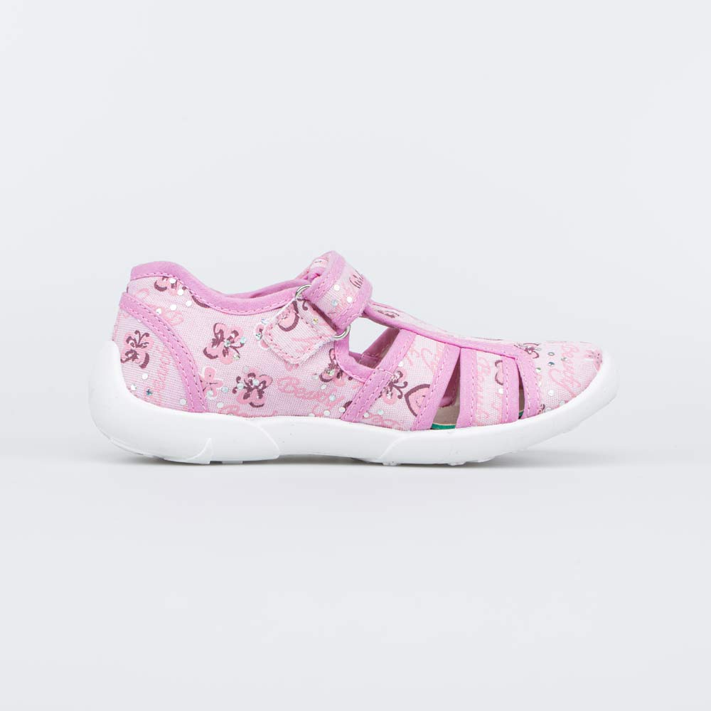 Розовые текстильные сандалии Котофей с закрытым носом разработаны для девочки. Они отлично подходят как для летних прогулок, так и в качестве сменной обуви в детский сад или в кружок.