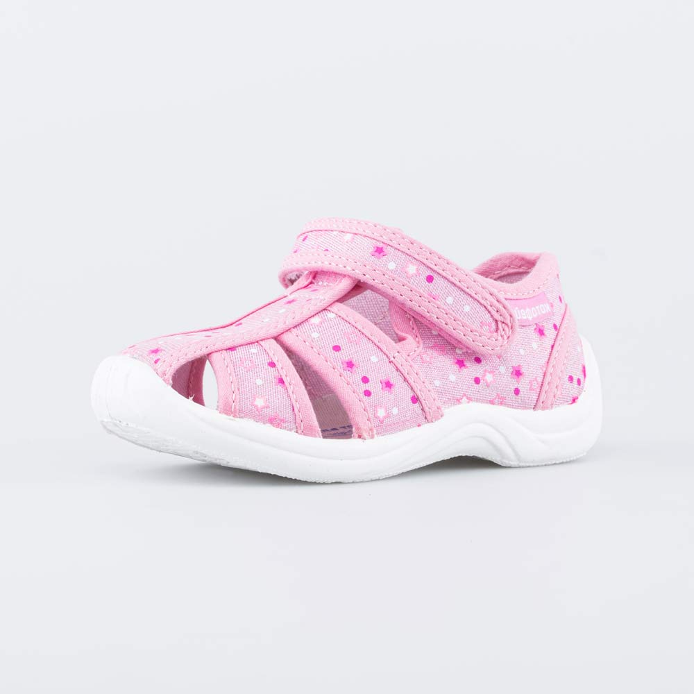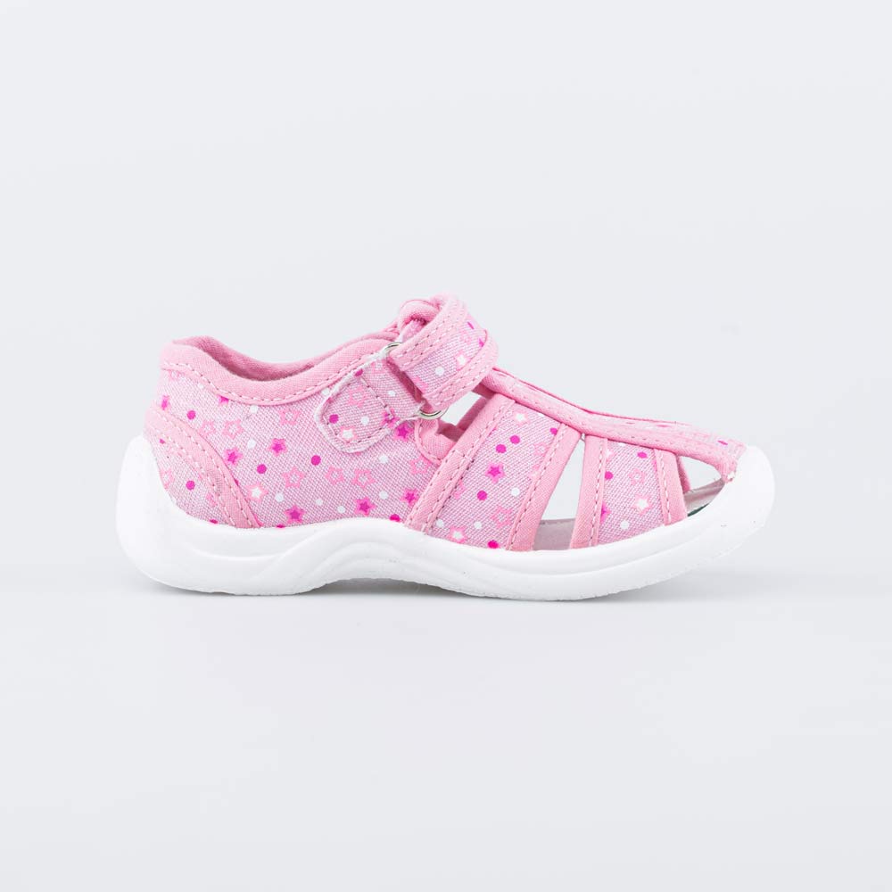 Текстильные сандалии для девочки подходят для жарких дней и повседневного использования в детском саду.
