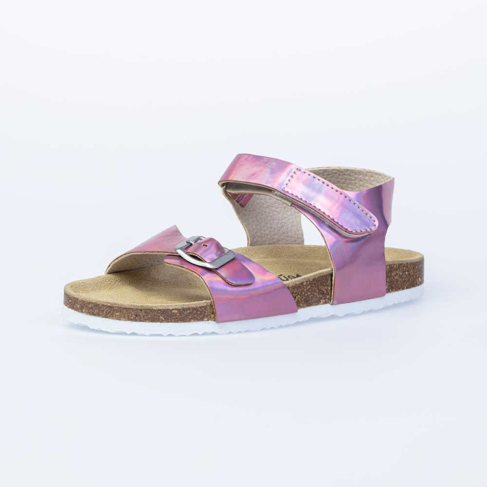 Эти сандалии для девочки имеют верх из искусственной кожи, выполненной в перламутре. Благодаря открытой конструкции, в таких летних босоножках комфортно в жаркую погоду.