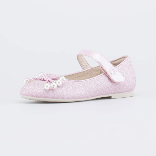 Нарядные праздничные туфли с бантиком и бусинами выполнены в розовом цвете с блеском и подходят для девочки дошкольного возраста.