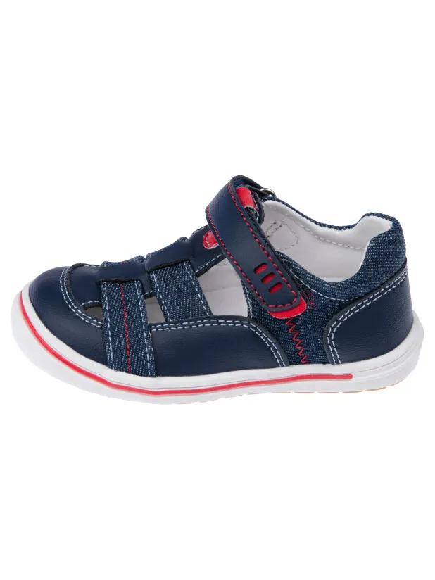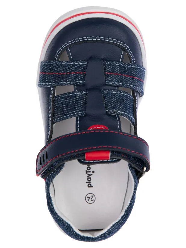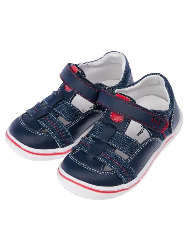 Сандалии из искусственной кожи. Подошва с противоскользящим протектором. Стелька из натуральной кожи с анатомическим элементом поддерживает свод стопы в правильном положении. Удобная застежка-липучка.