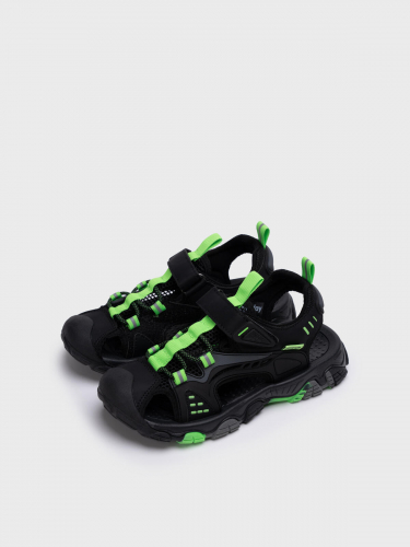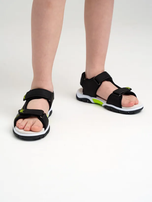 Сандалии из искусственной кожи. Облегченная подошва с противоскользящим протектором. Подкладка из натуральной кожи. Стелька из натуральной кожи с анатомическим элементом поддерживает свод стопы в правильном положении. Удобная застежка-липучка позволяет ребенку легко обуваться самостоятельно.