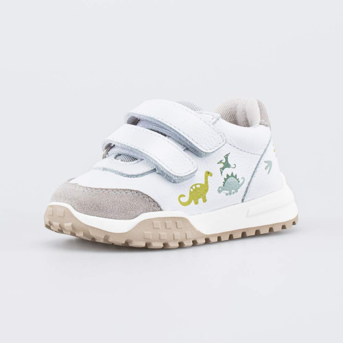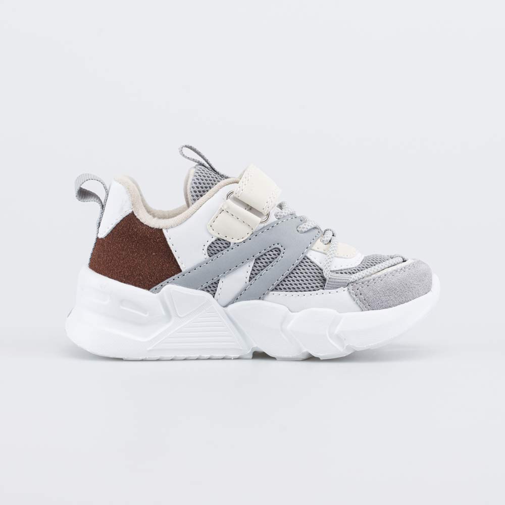 Модель привлекает сочетанием разных цветов, фактур и принтом на подошве, а светоотражающие элементы делают ребенка заметным в темноте.