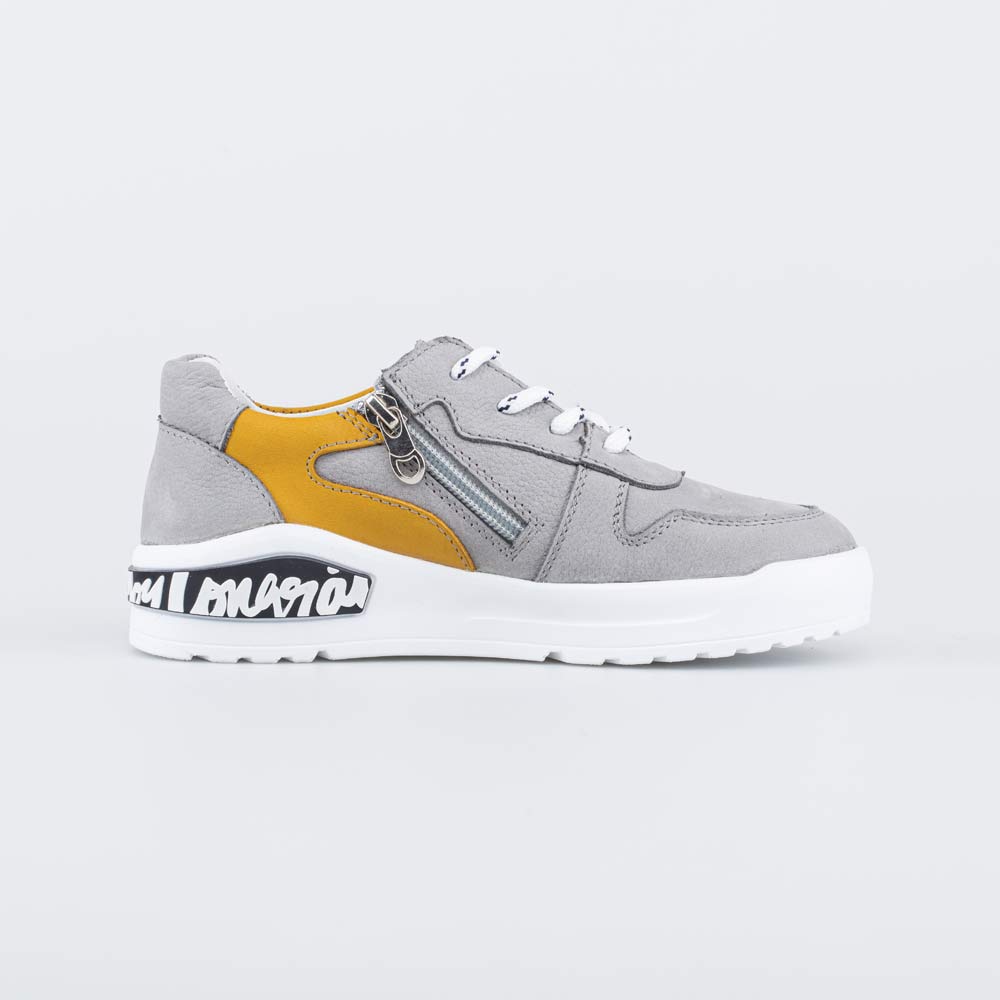 Полуботинки желто-серого цвета подходят для мальчика дошкольного или школьного возраста.