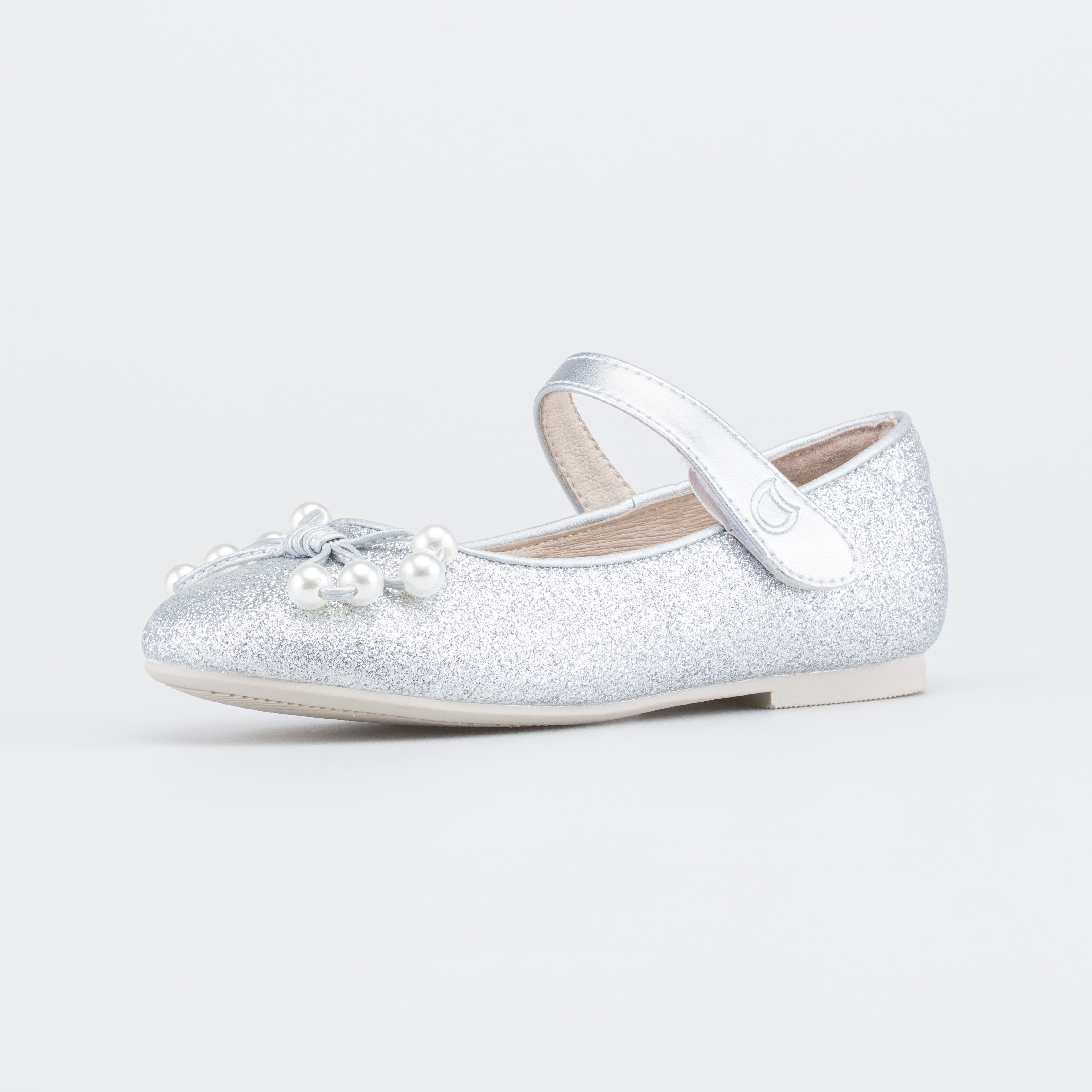 Верх выполнен из высококачественной искусственной кожи, красиво переливающейся серебристым блеском. Со стопами контактирует гипоаллергенная и дышащая натуральна кожа светлого оттенка – не придется переживать, что детская обувь окрасит носочки или колготки.