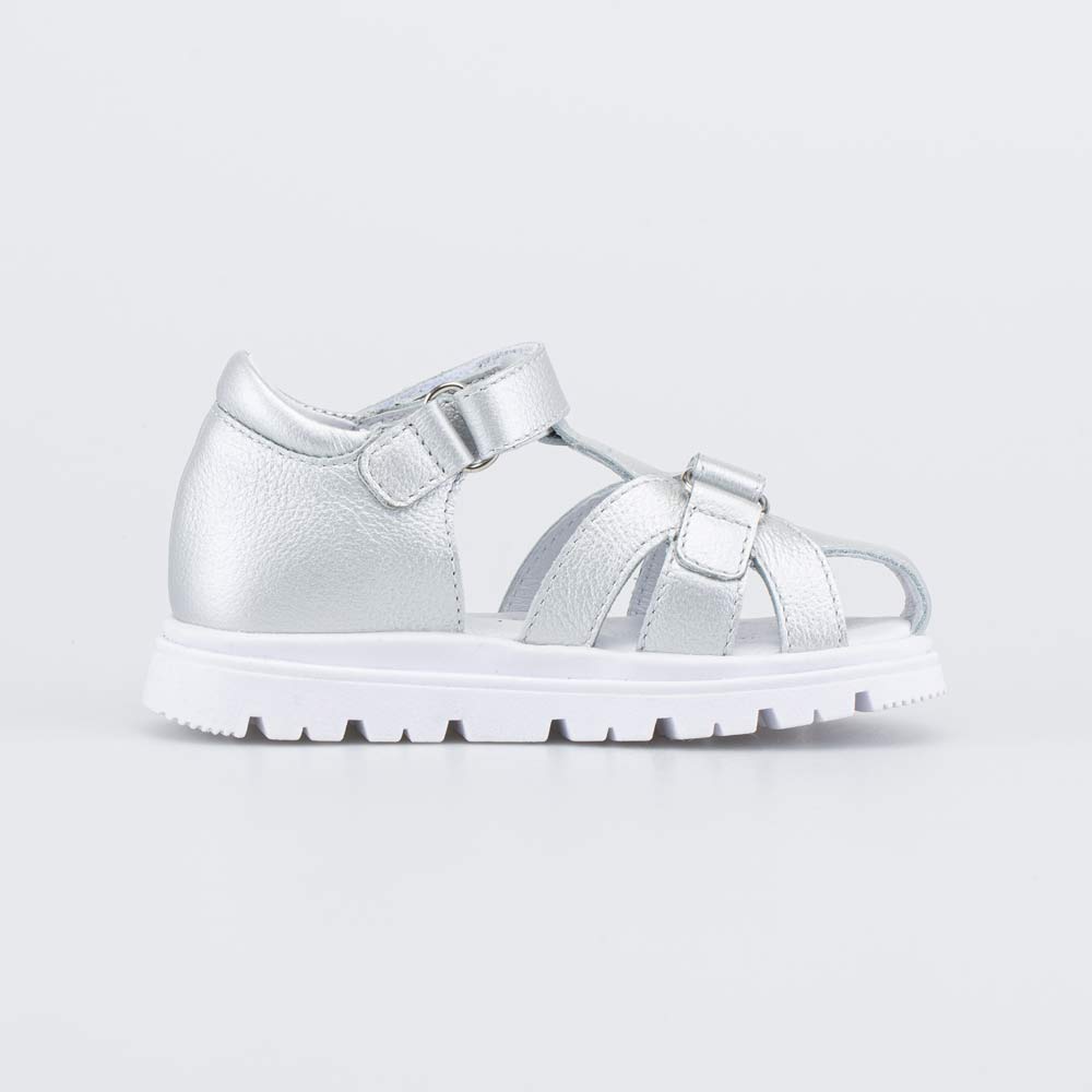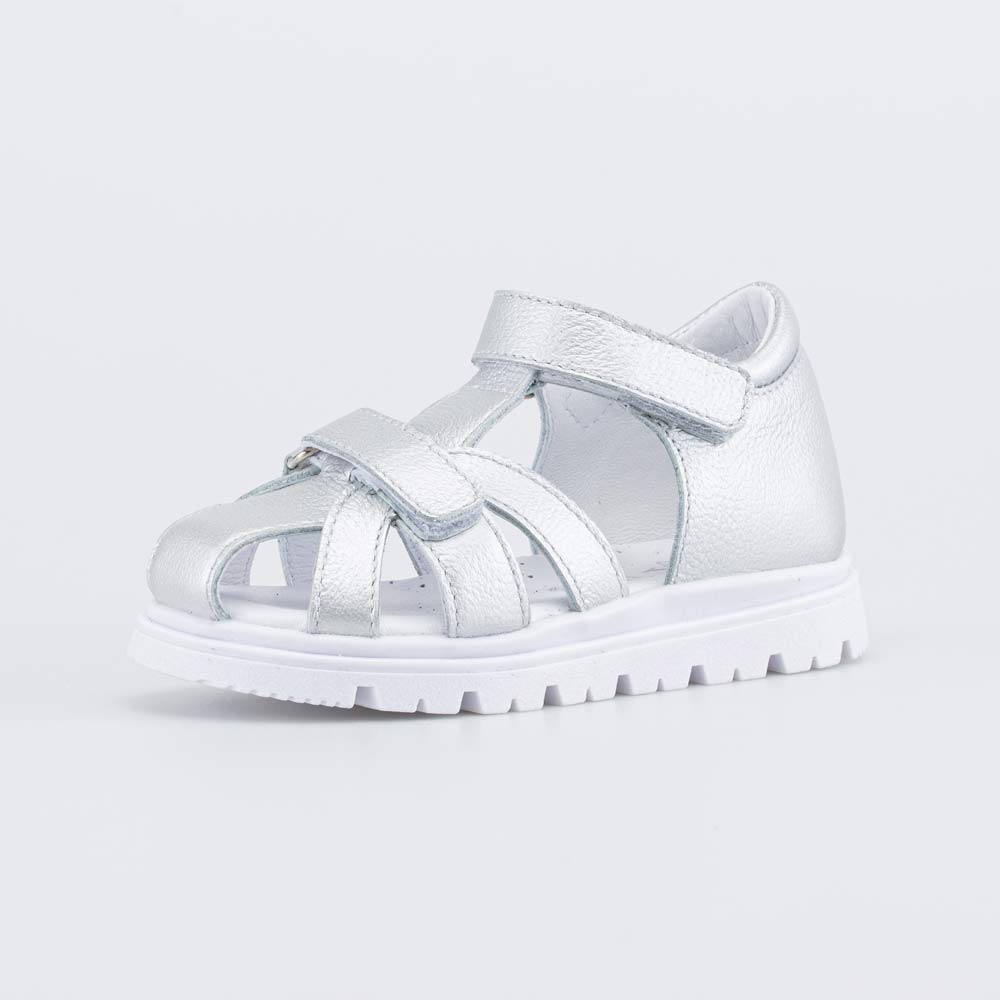 Серебристые сандалии подходят для девочки дошкольного возраста.