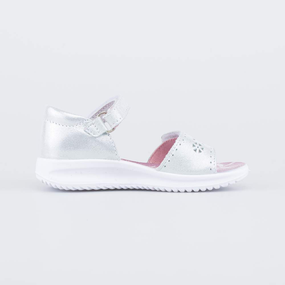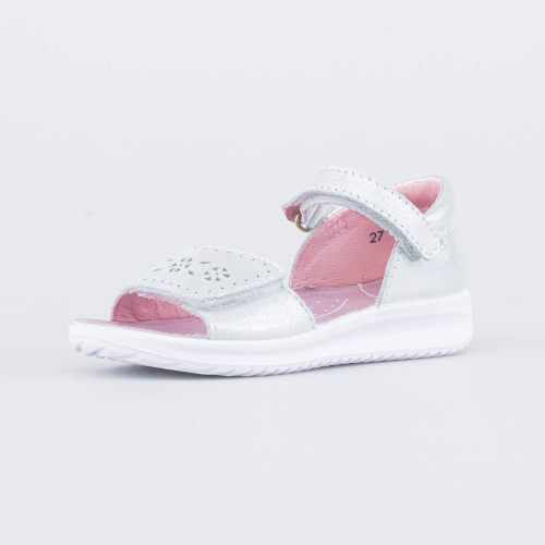 Серебристые кожаные сандалии подходят для девочки-подростка.