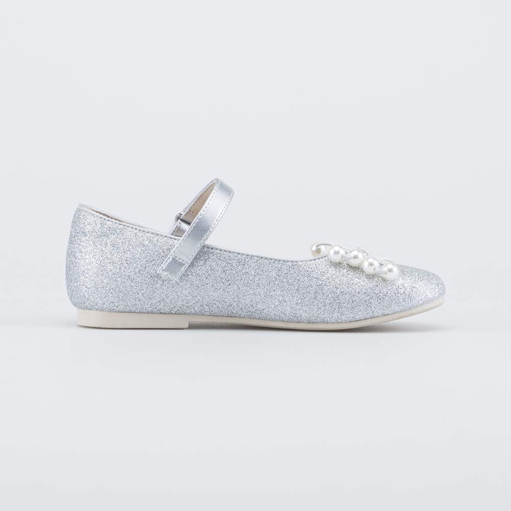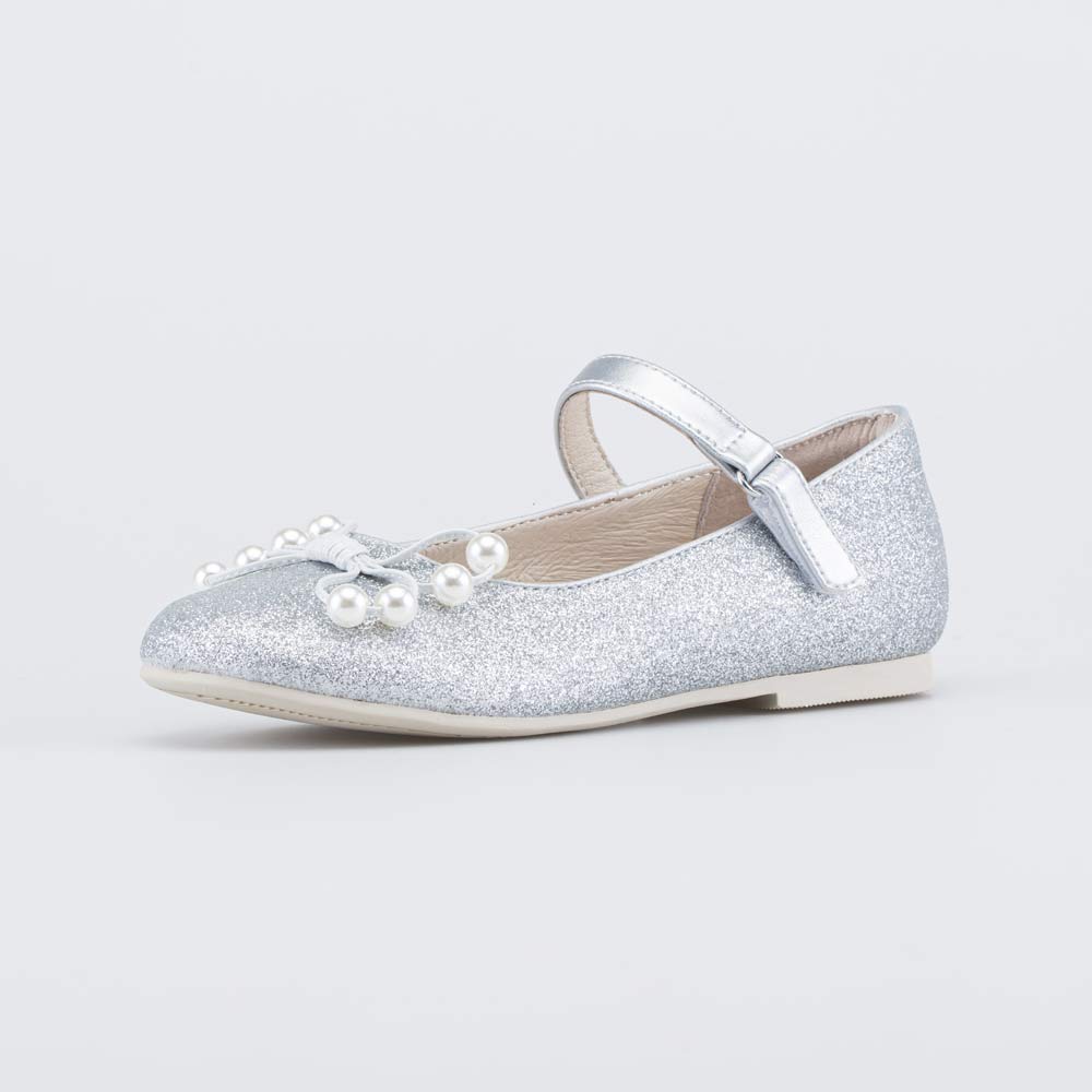 Праздничные туфли серебристого цвета подходят для девочки-дошкольницы.