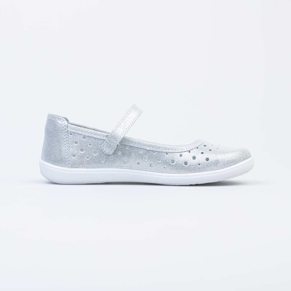 Серебристые туфли для девочки подходят как для нарядных повседневных образов, так и для праздничных утренников в школе.