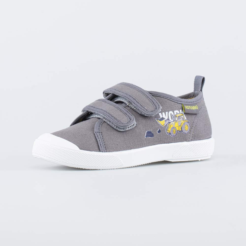 Серые кеды с принтом подходят для мальчика-дошкольника