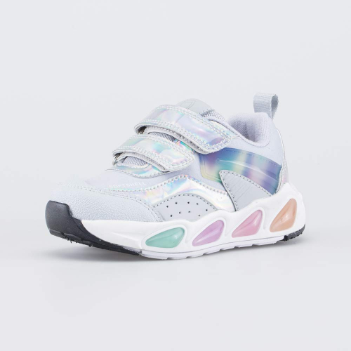 Анатомическая подошва из невесомого ЭВА (этиленвинилацетата) усилена термопластичной резиной для придания устойчивости на детской площадке. Оснащена мигающими светодиодами, которые срабатывают от ударной нагрузки.