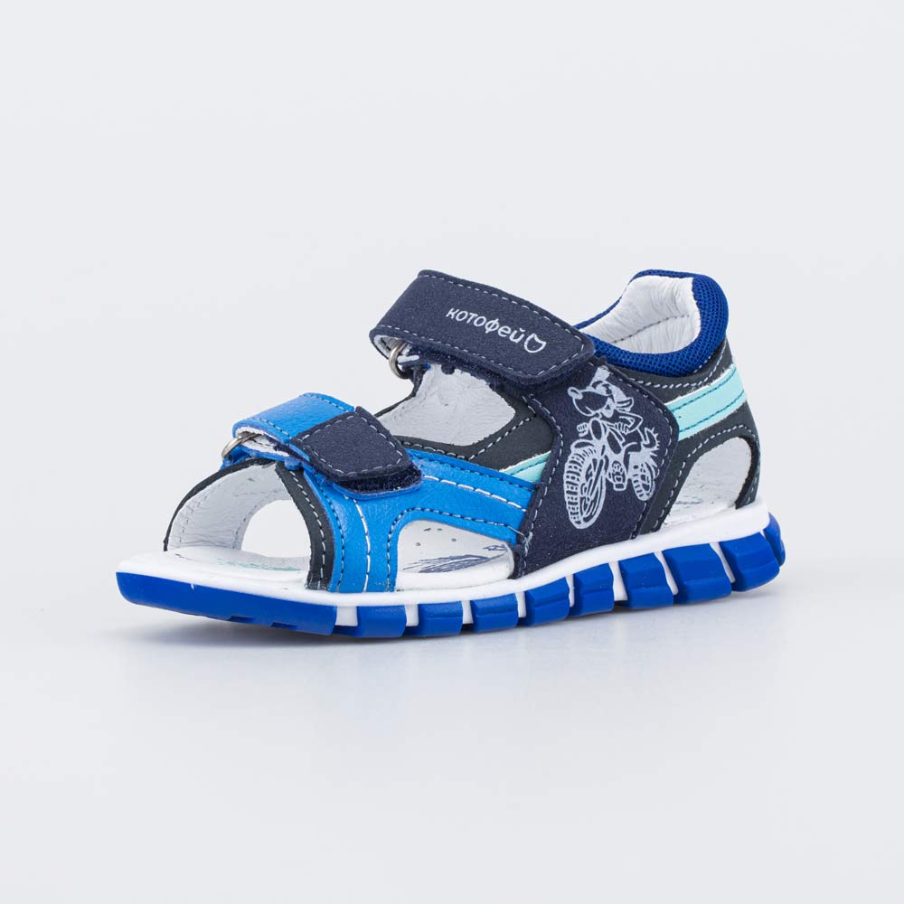 Сандалии на липучках, украшенные принтом, подходят для мальчика школьного возраста.