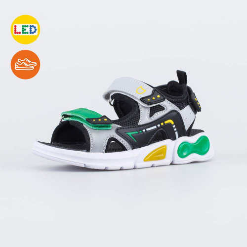 Яркие летние сандалии отлично дополнят пляжный образ мальчика школьного возраста.
