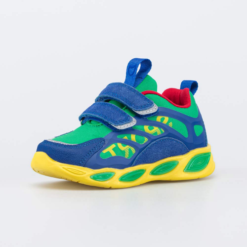 Анатомическая подошва из ЭВА оснащена мигающими светодиодами, которые срабатывают от ударной нагрузки. Дополнительную изюминку придает сочетание ярких цветов и надпись Sport на внешней части кроссовок.