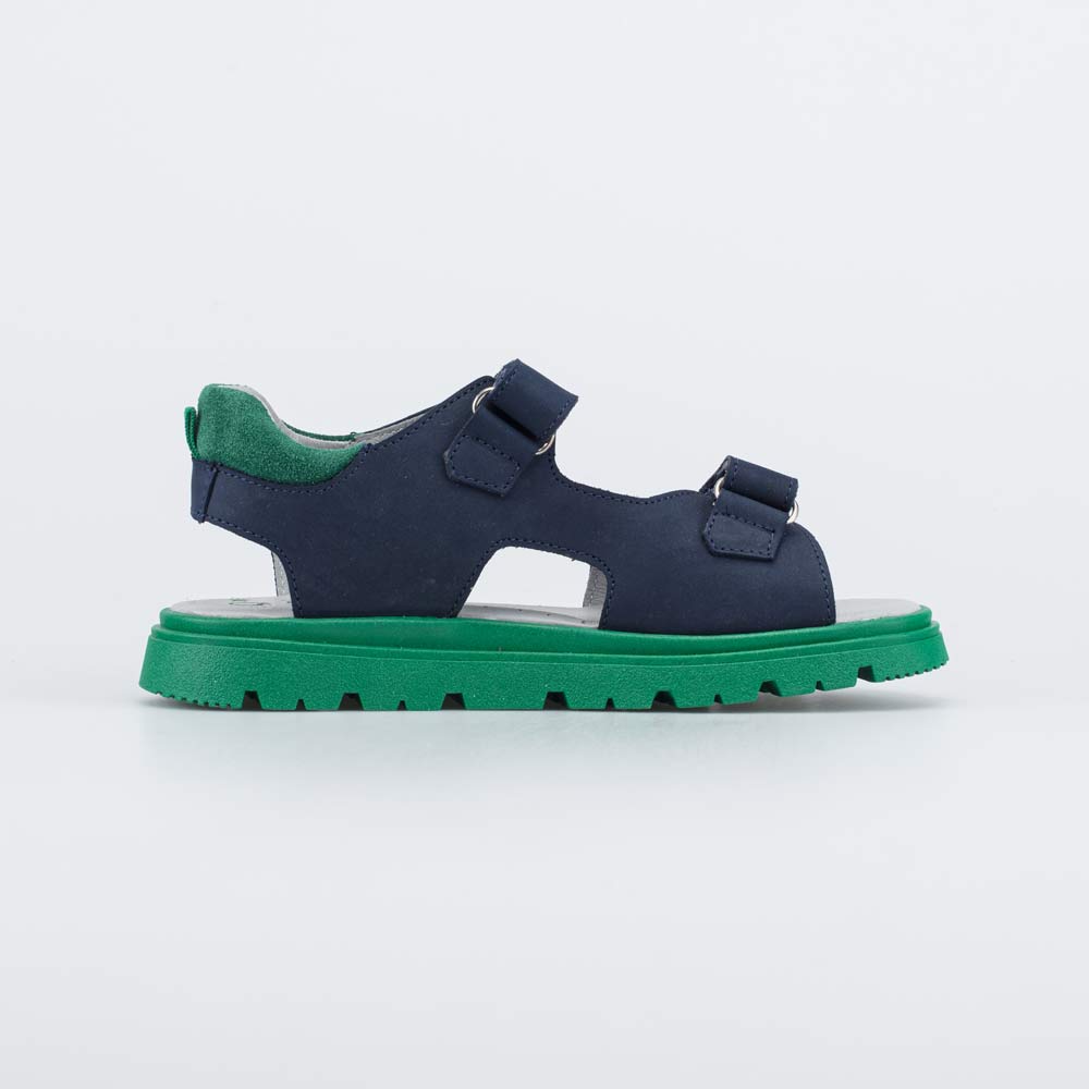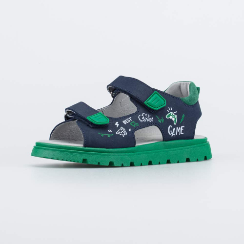 Яркие кожаные сандалии разработаны для мальчика школьного возраста.