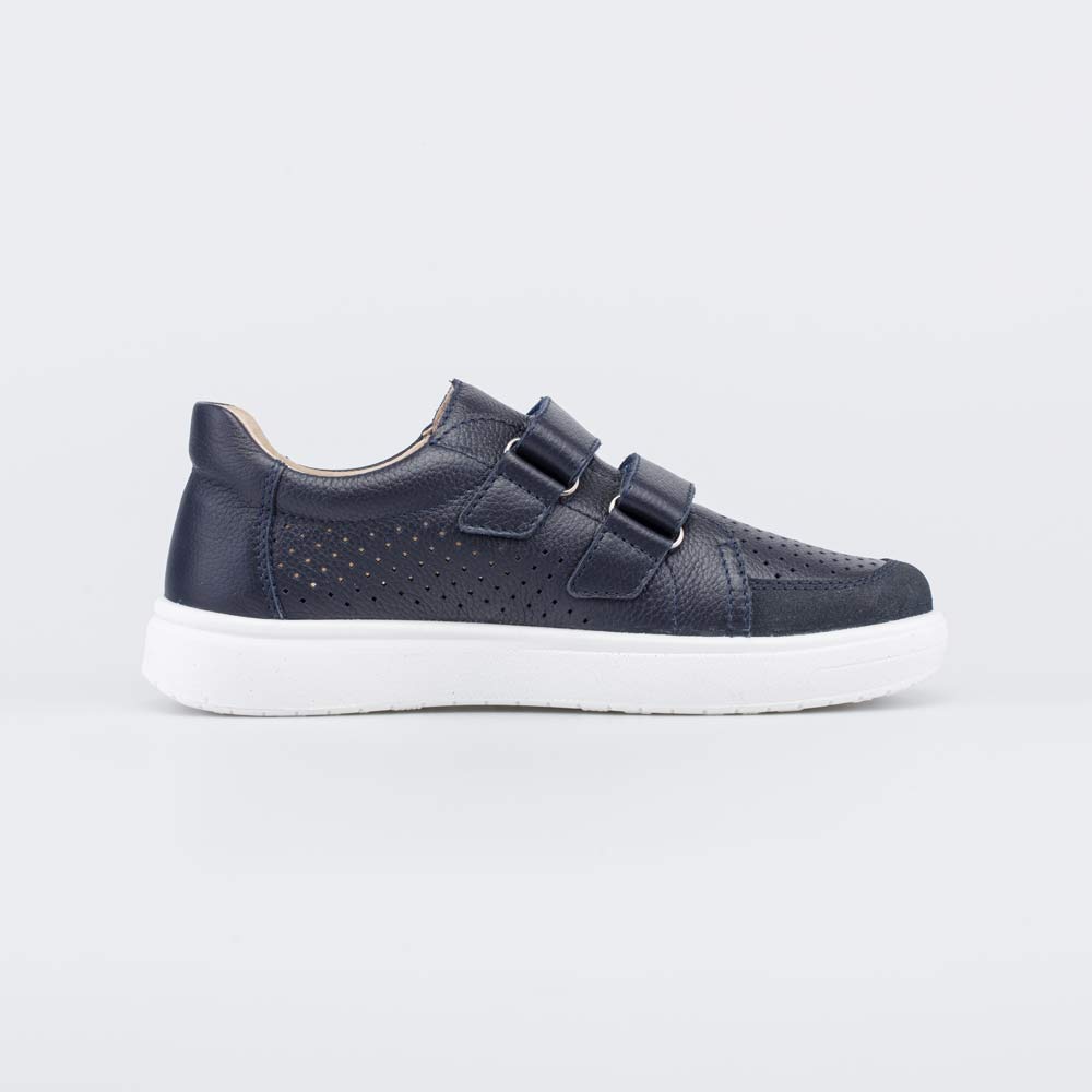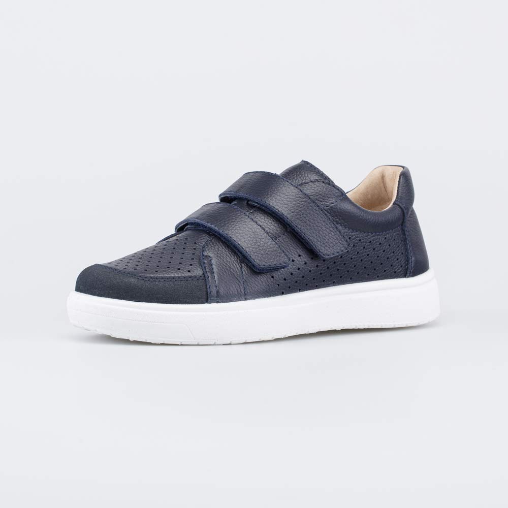 Верх, подкладка и съемная стелька выполнены из натуральной кожи – гипоаллергенного и дышащего материала, который обеспечивает здоровый микроклимат внутри детской обуви. Перфорация повышает воздухопроницаемость модели и обеспечивает комфорт в течение долгого учебного дня. Антивандальная накладка защищает носочную часть от повреждений.