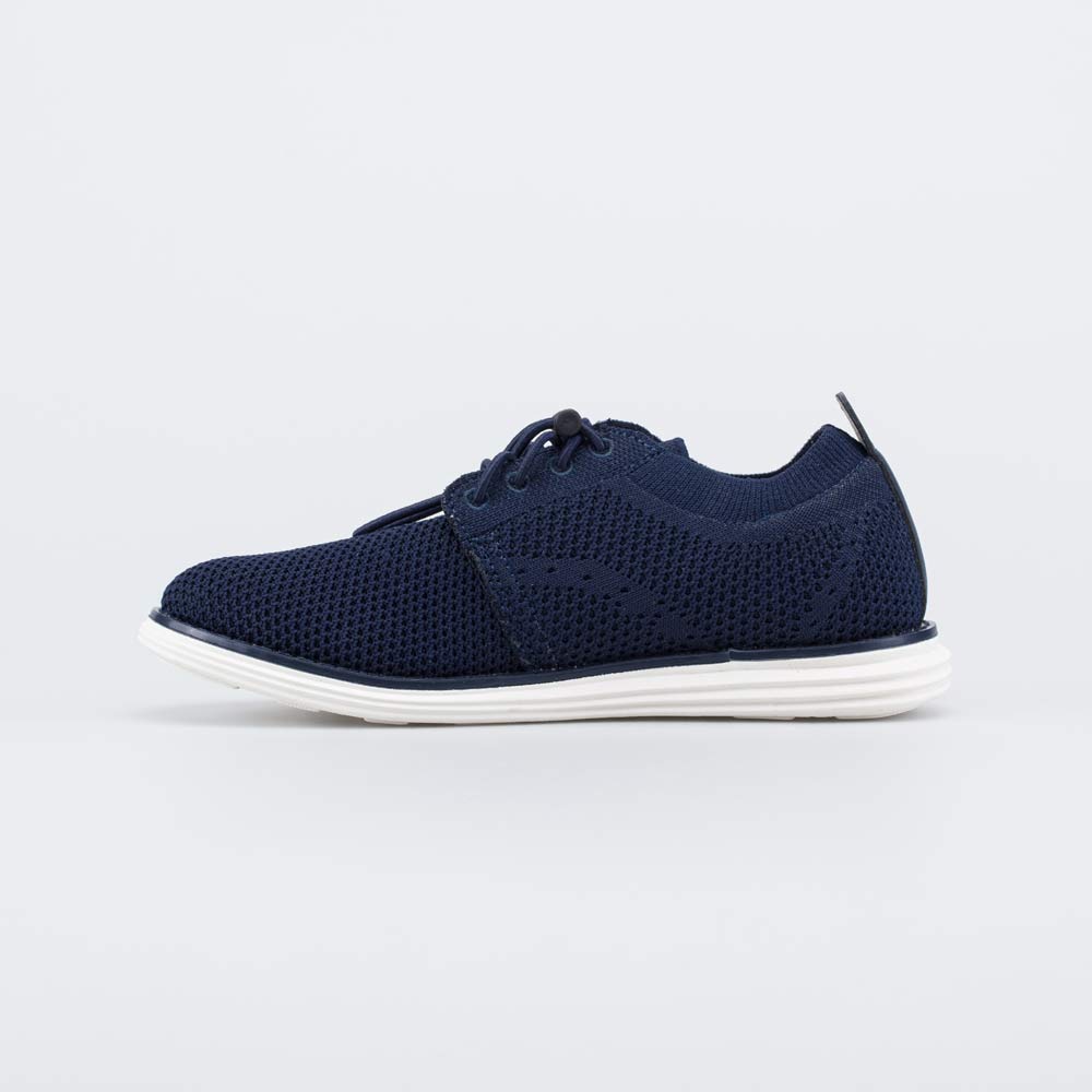 Верх выполнен из двухслойного трикотажа благородного синего цвета. Верхний слой с текстурой вязанного полотна обеспечивает элегантный внешний вид и хорошую вентиляцию. Нижний слой из плотного текстиля обладает гигроскопичными свойствами и отводит пот.
