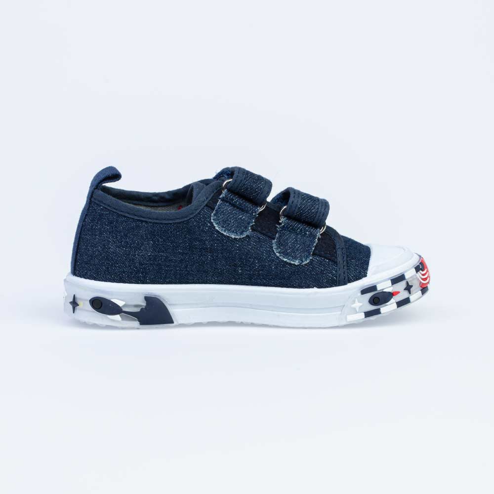 Детские джинсовые кеды Котофей с белой светящейся подошвой отлично подходят, как для прогулок, так и в качестве сменной обуви в детский сад.