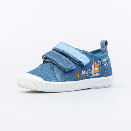 Хлопковые кеды, стилизованные под джинсу, подходят для мальчика дошкольного возраста.