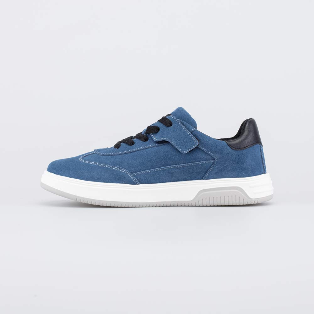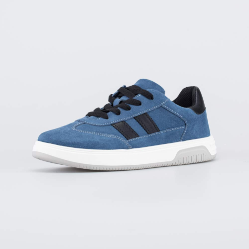 Эти синие кеды имеют верх из дышащей натуральной кожи-велюра. Подкладка из гипоаллергенного полиэстера отвечает за потоотведение. Съемная хлопковая стелька на формованной основе мягко амортизирует и поддерживает стопу.