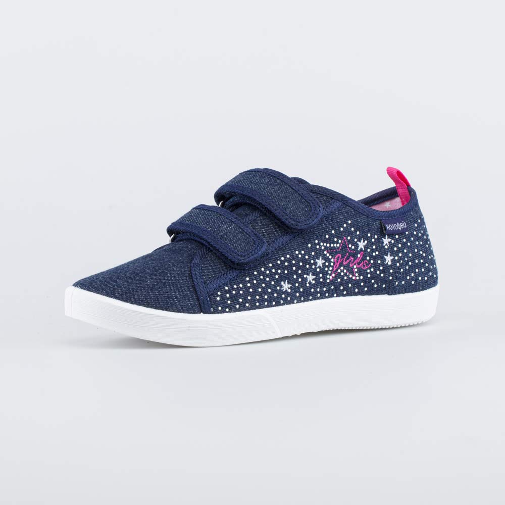 Кеды для девочки украшены вышивкой и стразами.
