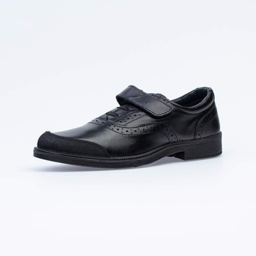 Школьные туфли имеют верх из гипоаллергенной и дышащей натуральной кожи синего цвета, украшенной фигурной перфорацией. Подкладка и стелька состоят из белой натуральной кожи – не придется переживать, что детская обувь испачкает носочки или колготки.