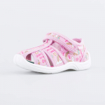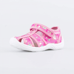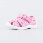 Модель предназначена для детей ясельного возраста, поэтому особенное внимание уделено анатомическим свойствам: поддержку стопы обеспечивает подошва с небольшим каблучком, задник необходимой жесткости и мягкий подсводник. Закрытый круглый носок защищает пальчики.