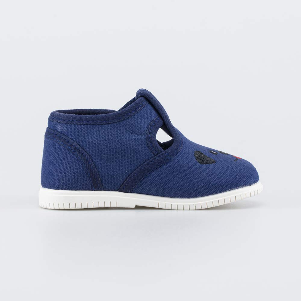 Текстильные туфельки, украшенные милой вышивкой в виде мордочки щенка, подходят для мальчика ясельного возраста.