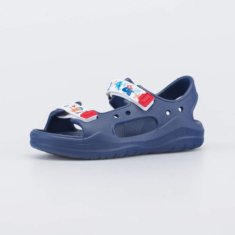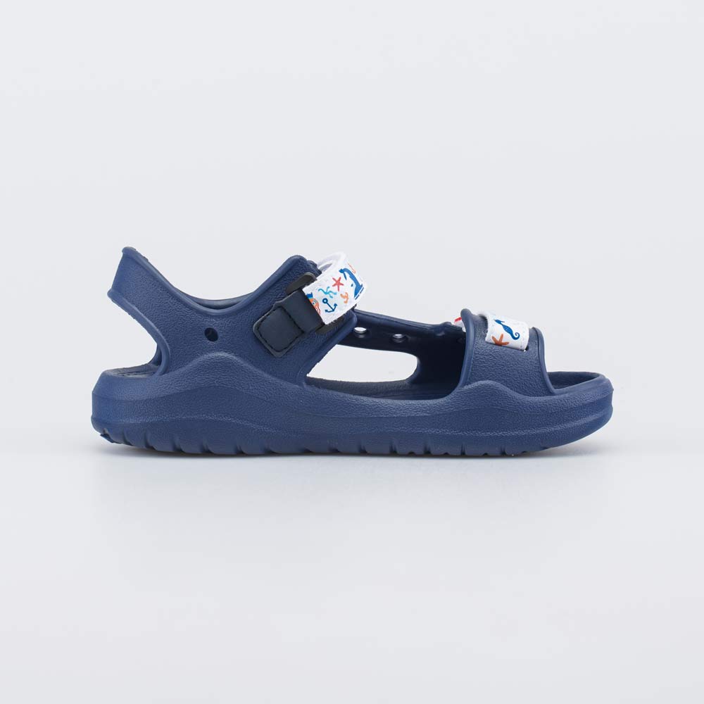 Летняя пляжная обувь выполнена из материала ЭВА синего цвета. Пляжные сандалии для мальчика отлично подходят как обувь для купания, для моря или для бассейна.