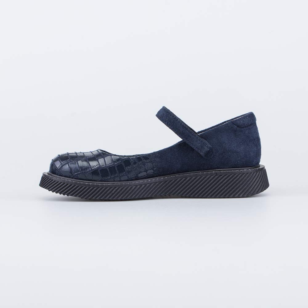 Туфли для девочки синего цвета с подкладкой из натуральной кожи. Верх выполнен из искусственной кожи, а подкладка и стелька из натуральной - износостойкого, гипоаллергенного и дышащего материала.
