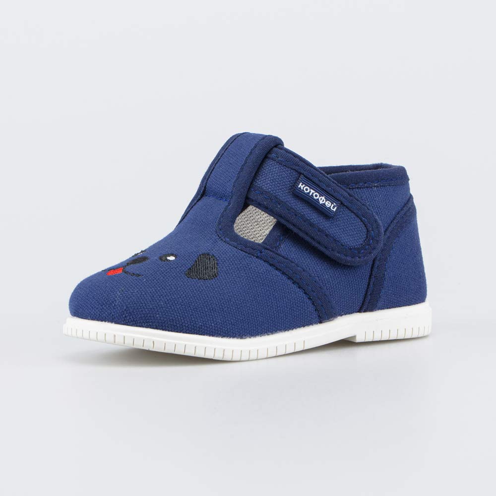 Детские туфельки, украшенные милой вышивкой в виде мордочки щенка, подходят для мальчика, который только начинает ходить.