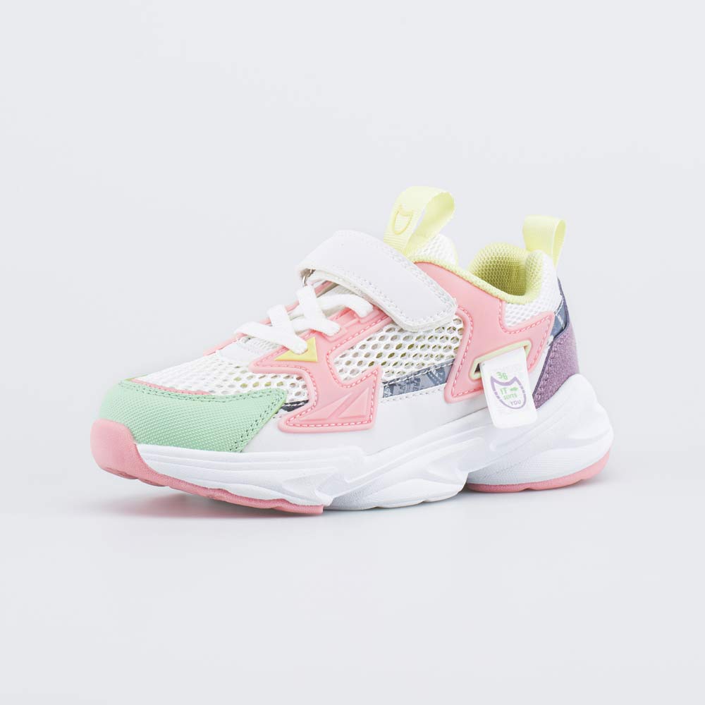 Яркие кроссовки, созданные с учетом особенностей детской стопы, подходят для девочки дошкольного возраста.