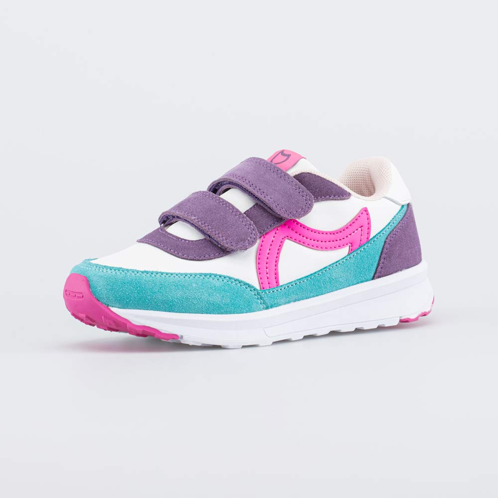 Анатомическая подошва из ЭВА усилена накладками из термопластичной резины для придания износостойкости и устойчивости на детской площадке. Не оставляет следов на напольных покрытиях.
