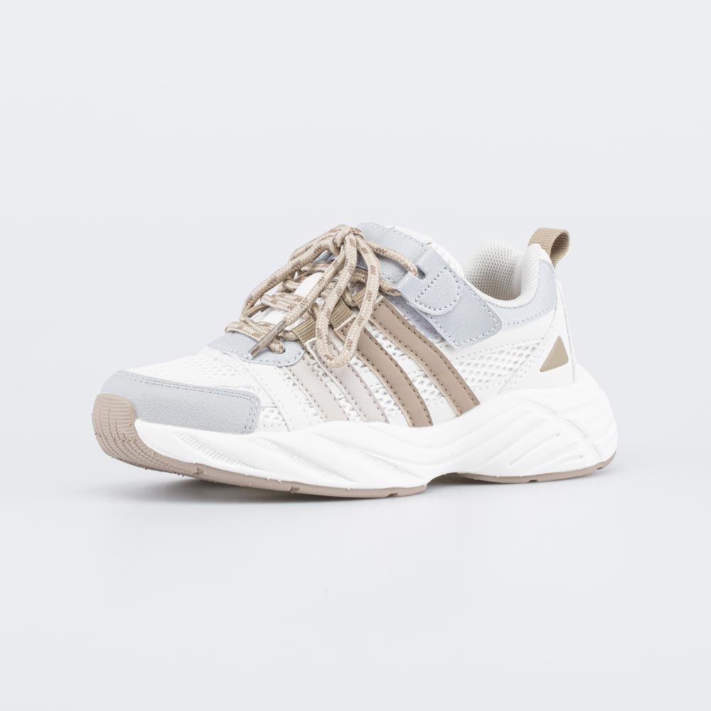 Верх подростковых кроссовок изготовлен из комбинации искусственной кожи и текстильной сетки, которая обеспечивает стопам высокий уровень вентиляции, что особенно важно во время длительной носки и активного отдыха.
