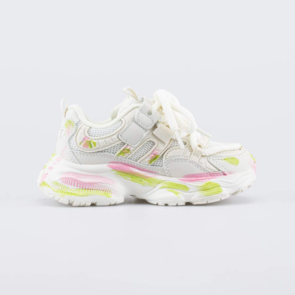Модные кроссовки для девочки выполнены в трендовом бежевом, который дополнен легкими цветовыми акцентами.