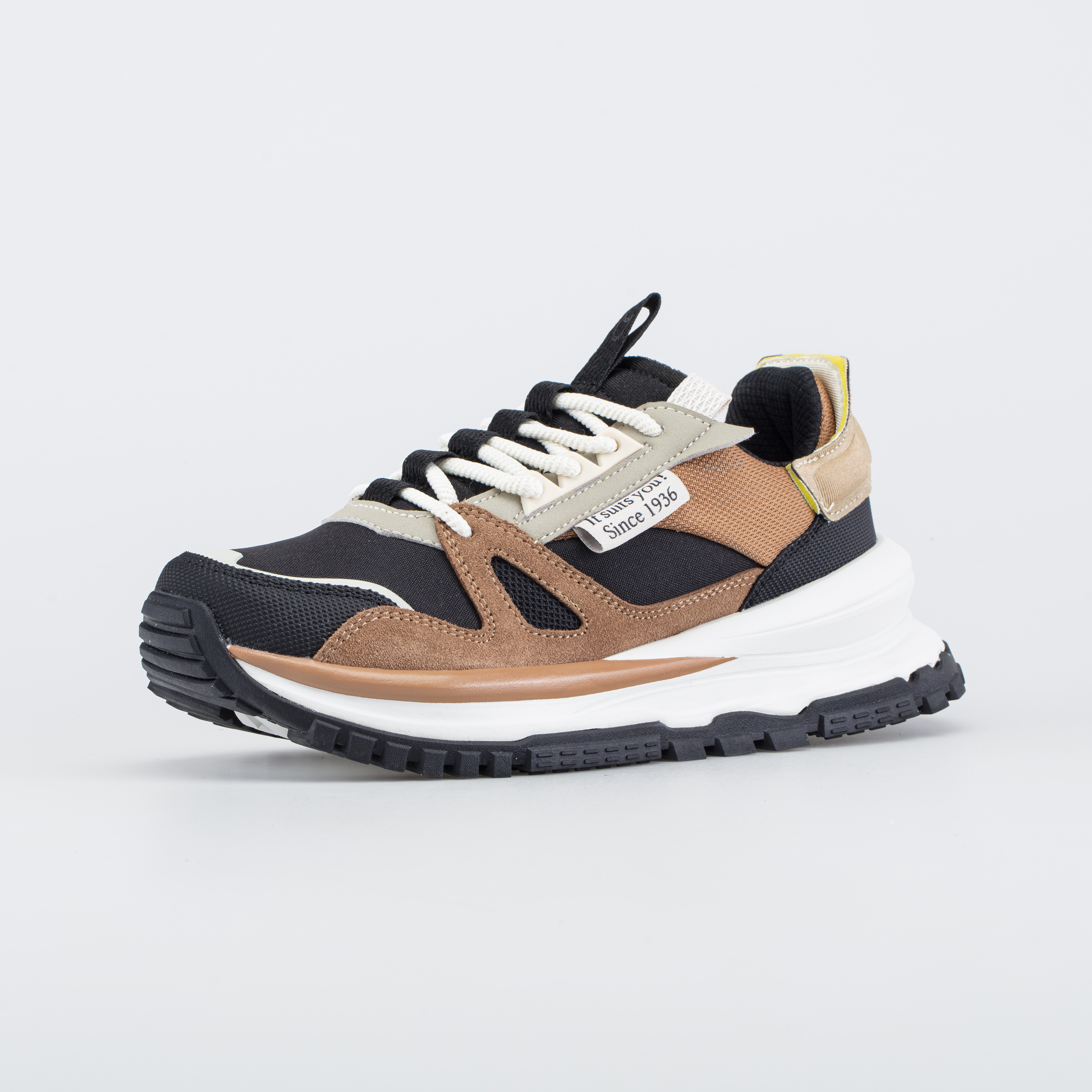 Мужские кроссовки выполнены в модном сочетании природных цветов и оттенков.
