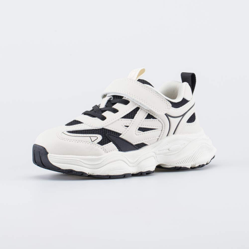 Удобные кроссовки для мальчика выполнены в сочетании контрастных цветов: черного и бежевого.