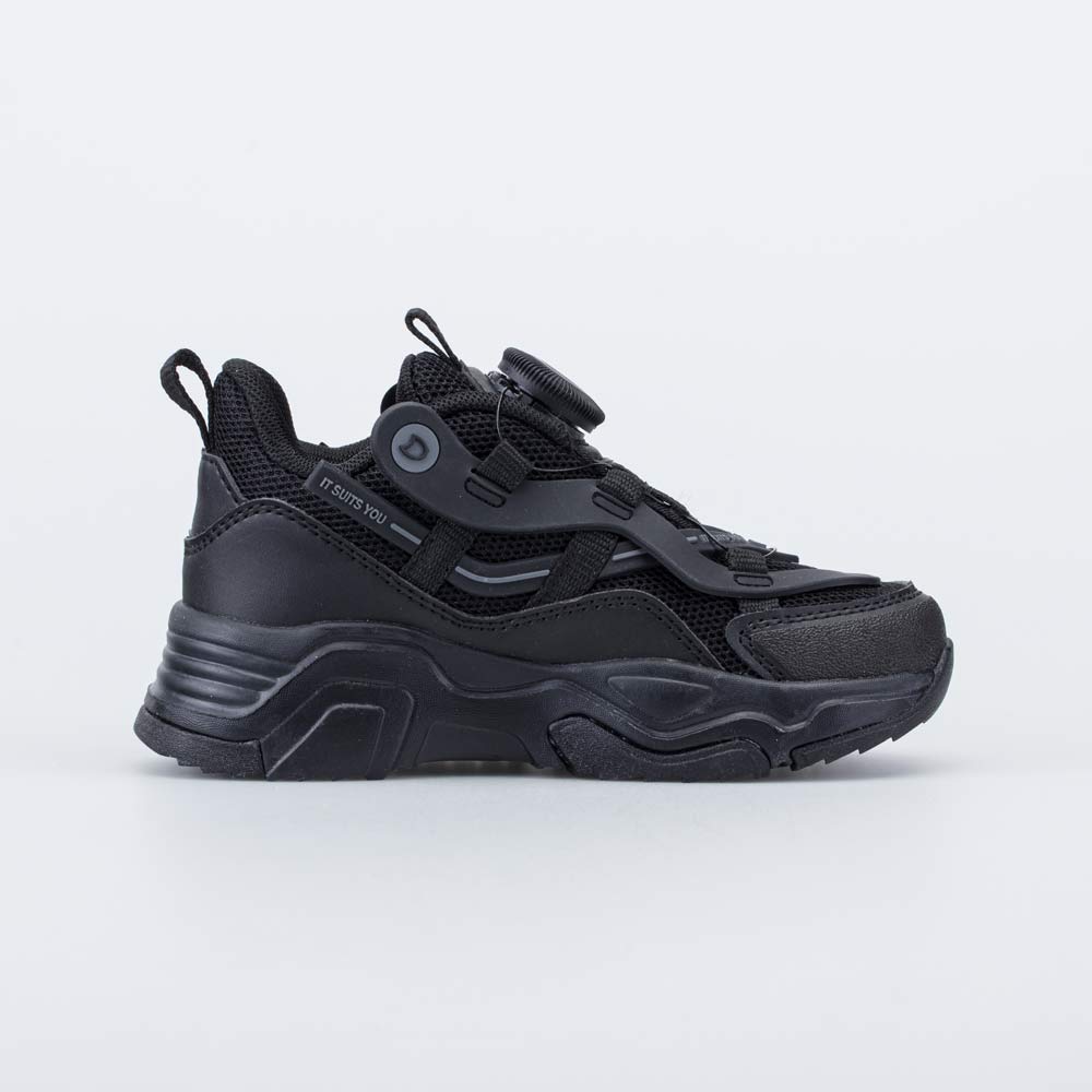 Черные кроссовки для мальчика выполнены в модном тренде, когда высокая подошва ощущение плоской, устойчивой и массивной, при этом сохраняя анатомические свойства.