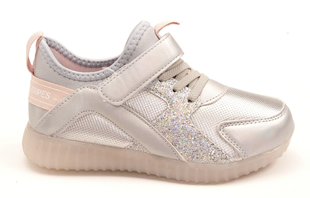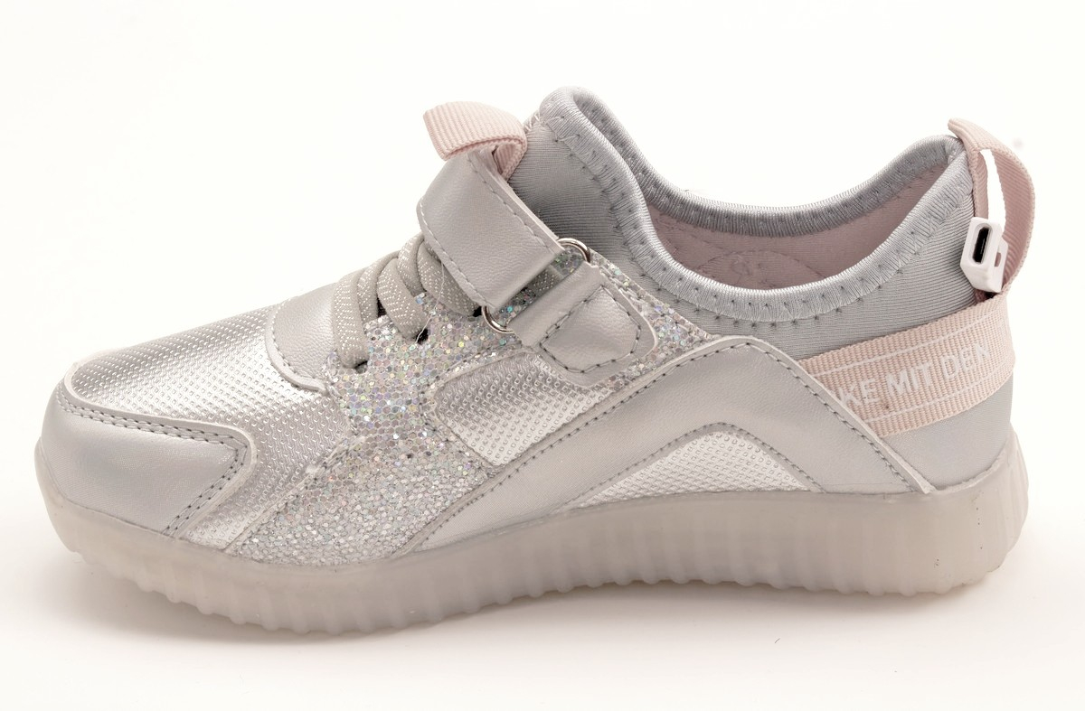 Эльфы 190-3-6 Кроссовки детские серебр иск кожа, с подсветкой