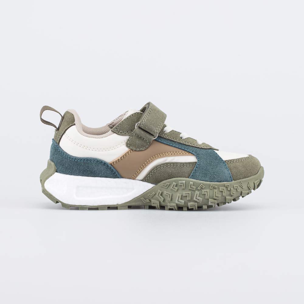Удобные и функциональные кроссовки, выполненные в сочетании оливкового и бежевого цветов, подходят для мальчика подросткового возраста.