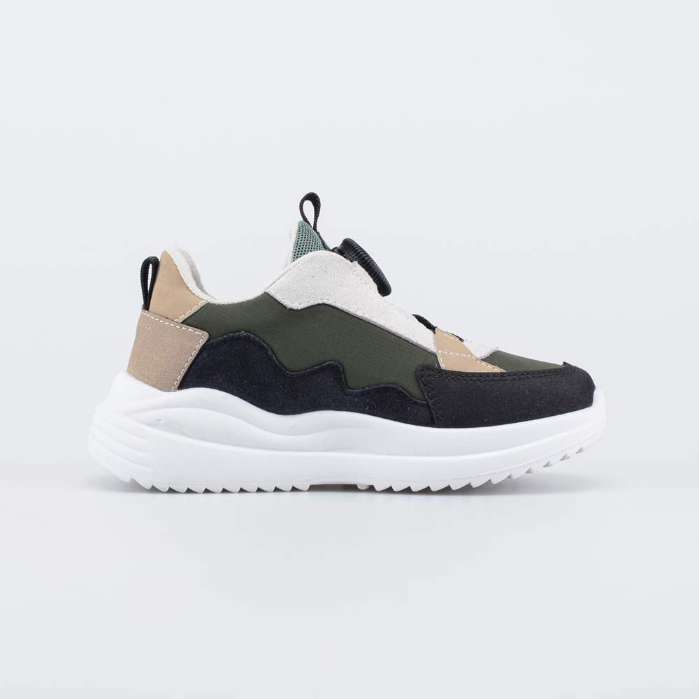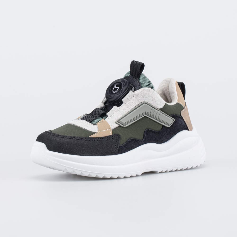 Детские кроссовки с системой быстрой шнуровки отлично дополняют спортивные образы мальчика дошкольного возраста.