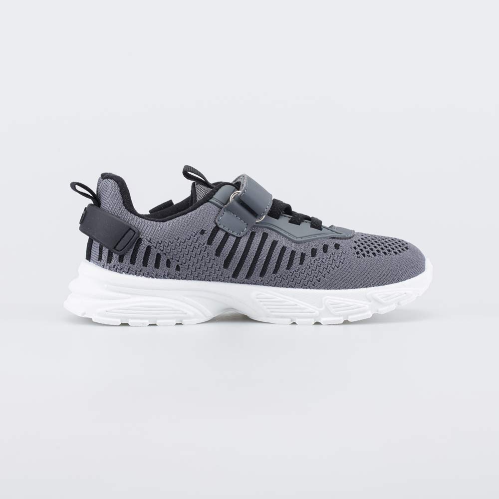 Верх серых кроссовок выполнен из вязаного полиэстера, который обеспечивает высокую воздухопроницаемость и сохраняет комфорт внутри детской обуви даже при длительной носке.