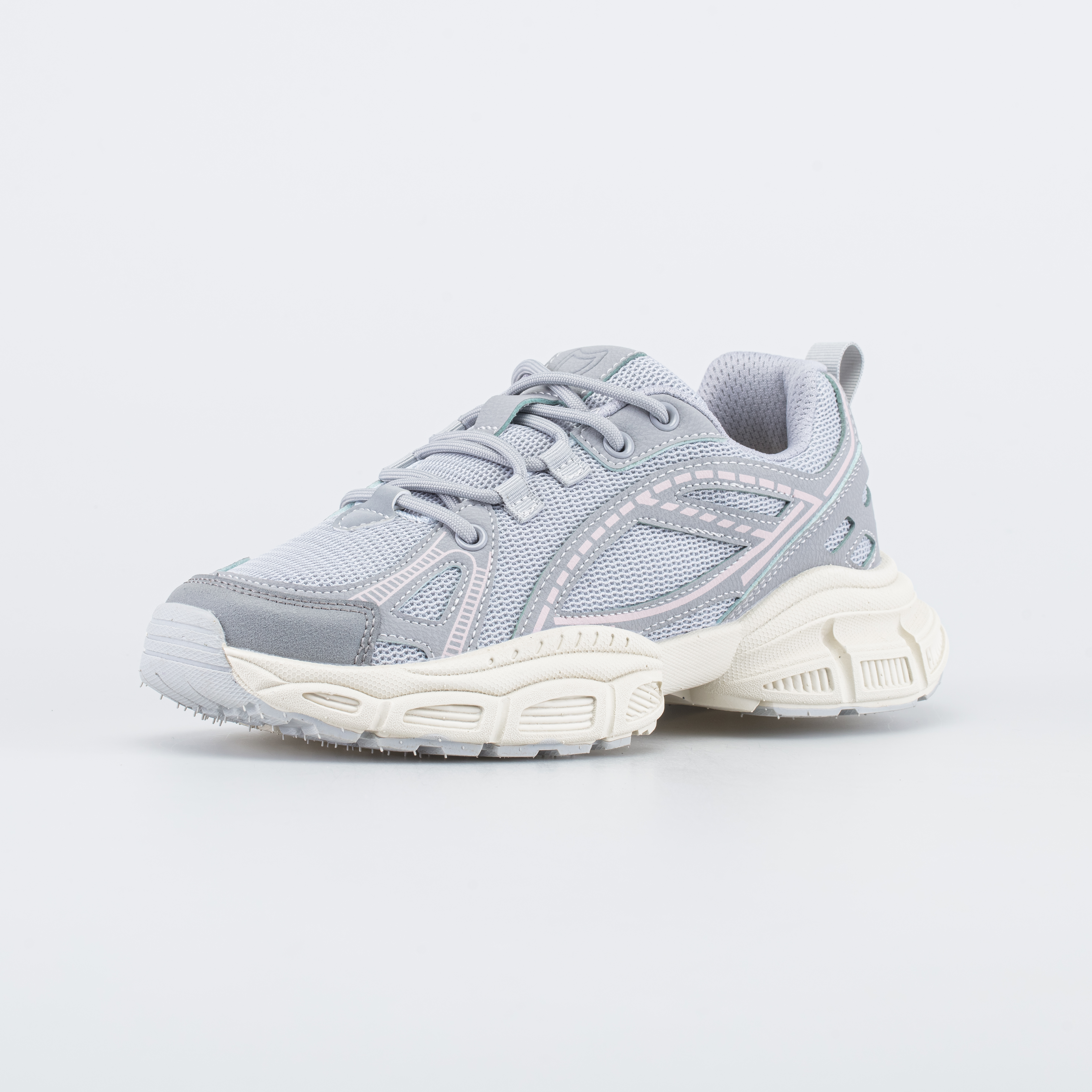 Кроссовки для девочки выполнены в трендовом сером цвете с легким акцентом розового.