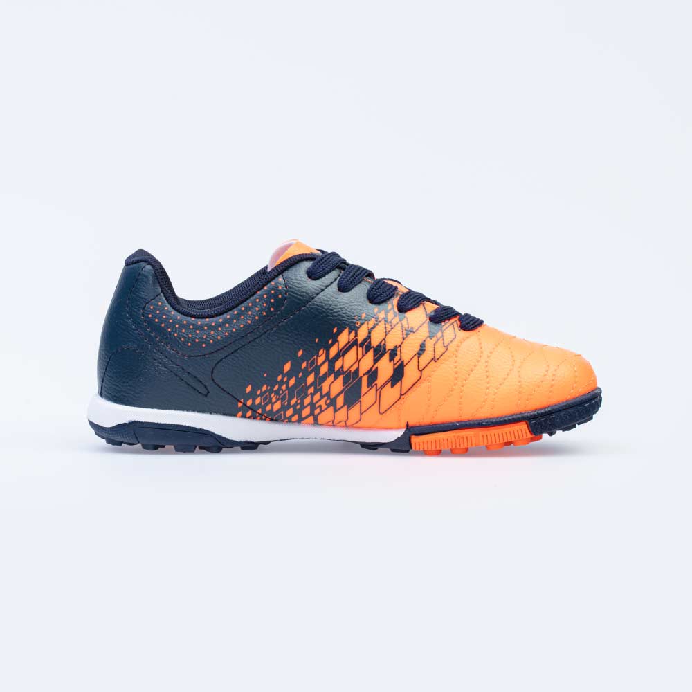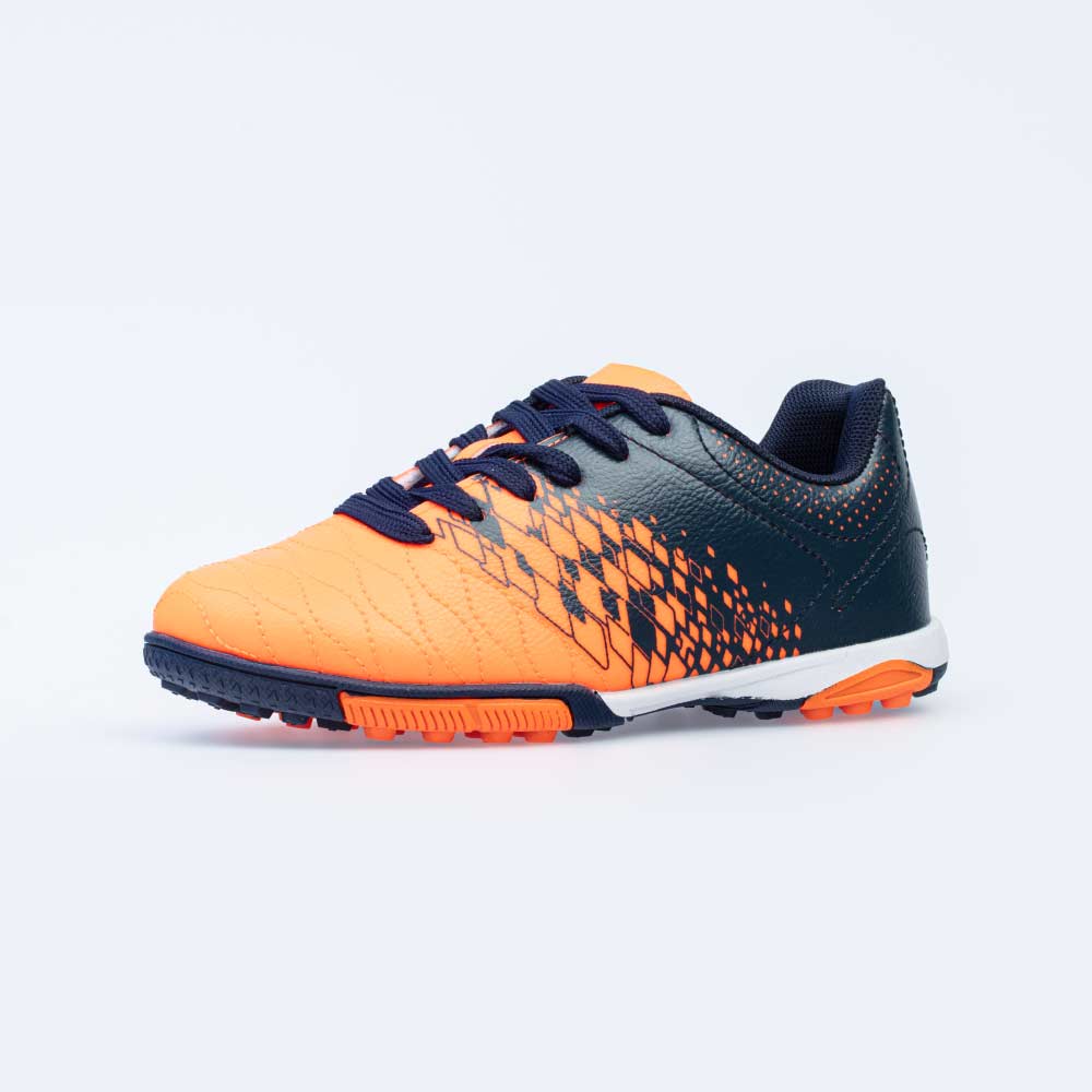 Верх подростковых кроссовок изготовлен из высококачественной искусственной кожи контрастных цветов: насыщенно-синего и сочного оранжевого.