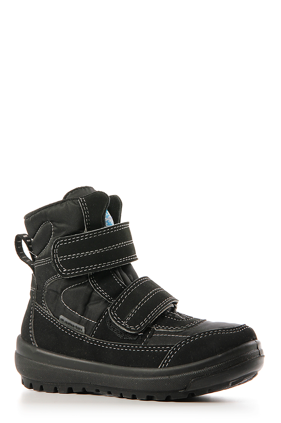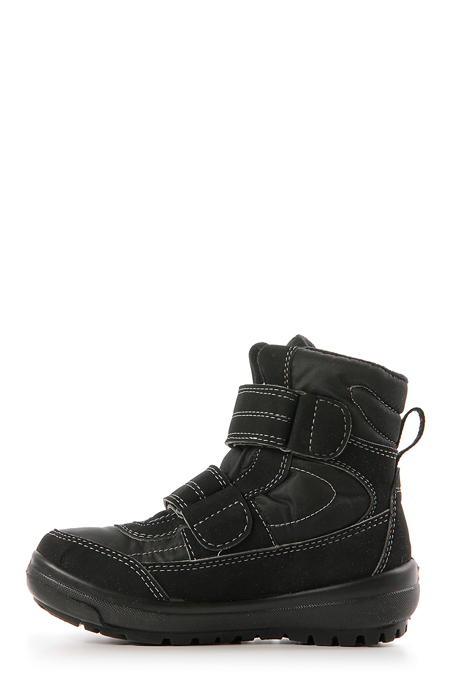 Удобные ботинки от Alaska Originale покорят Вашего ребёнка с первого взгляда! Модель изготовлена из текстиля чёрного цвета и декорирована прорезиненными вставками, фирменной нашивкой на язычке, прострочкой светло-серого цвета. Два ремешка на липучках зафиксируют модель на ноге. Подкладка из шерсти согреет ноги в холодную погоду. Толстая подошва дополнена противоскользящим рифлением.