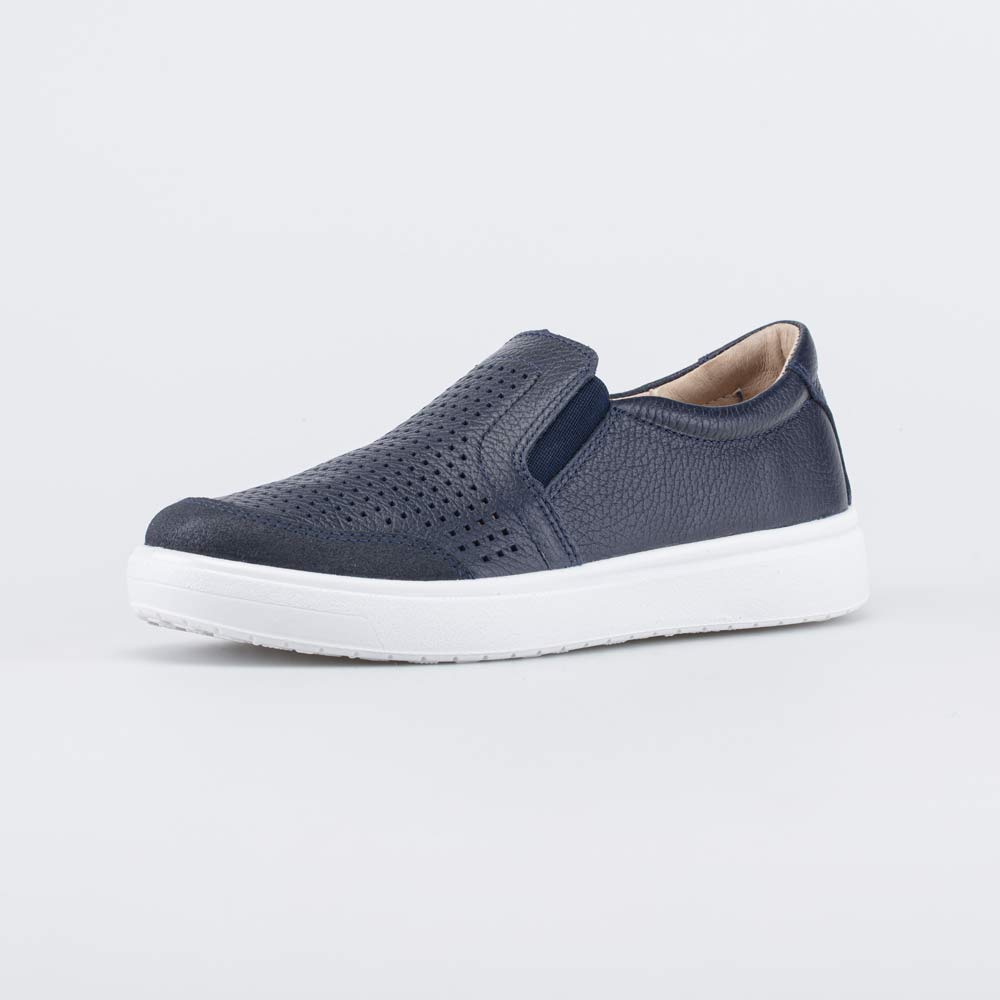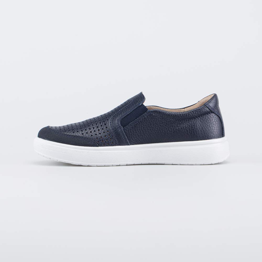 Синие слипоны хорошо сочетаются со школьной формой и подходят в качестве сменной обуви.