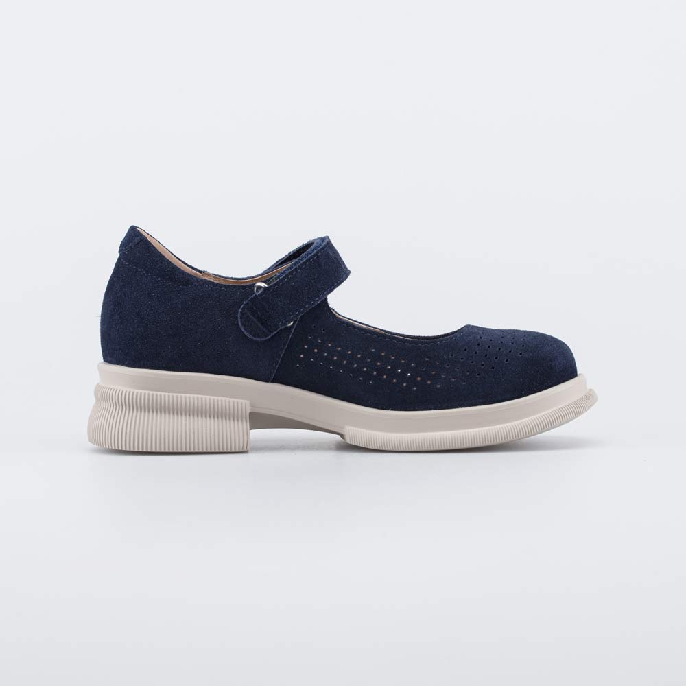 Школьные туфли имеют верх из гипоаллергенной и дышащей натуральной кожи-велюра, привлекающей внимание своей бархатистой поверхностью. Сквозная перфорация увеличивает воздухопроницаемость и обеспечивает комфорт даже при длительной носке.